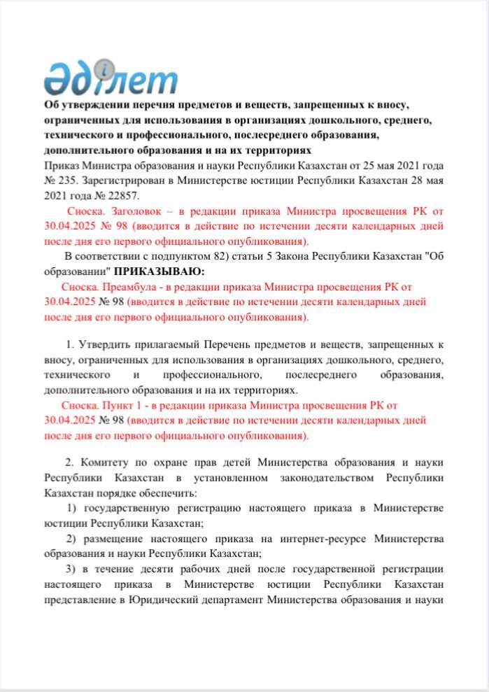 Мектепке дейінгі, орта, техникалық және кәсіптік, орта білімнен кейінгі, қосымша білім беру ұйымдарында және олардың аумақтарында әкелуге тыйым салынған, пайдалануы шектелген заттар мен бұйымдардың тізбесін бекіту туралы.